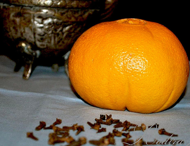 Берёте апельсин (или апельсины - смотря сколько Вы будете делать "Гвоздичных апельстинов" и втыкаете в него гвоздичные бутоны - чем больше, тем душистее у Вас получится апельсин.