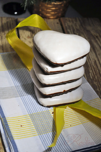 Мои дополнения - белковая глазурь. Мне пряники с глазурью нравятся больше, чем без неё. Да и с глазурью они дольше остаются свежими.