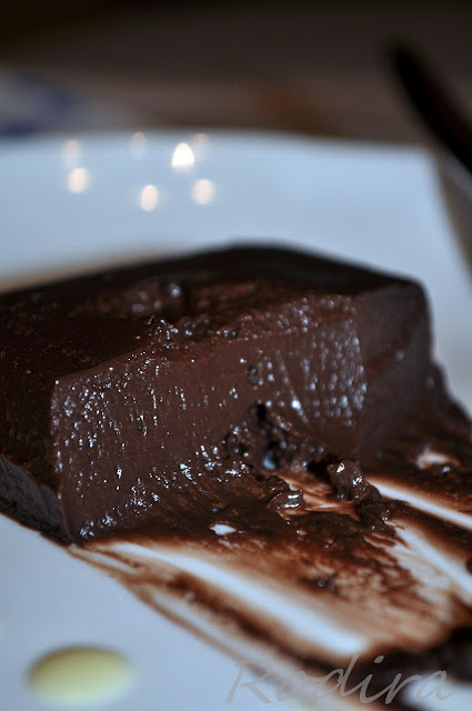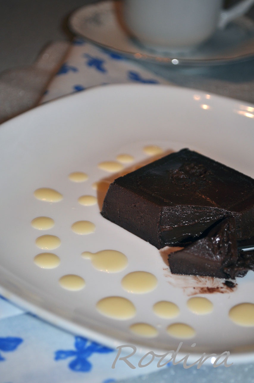 Первый раз я пробовала такой десерт в ресторане. У него было более плотная оболочка, а вот серединка текла. Честно говоря, мне очень хотелось получить пирожное именно с "текущей" серединкой, но по причине выпекания в невысокой форме у меня оно получилось не совсем таким, каким задумывалось. Это пирожное больше похоже на шоколадную помадку. Но от этого оно не стало ординарным, проходным - в нём есть своя изюминка - оно похоже на холодный мягкий ганаш. По мне, так это даже вкуснее.
