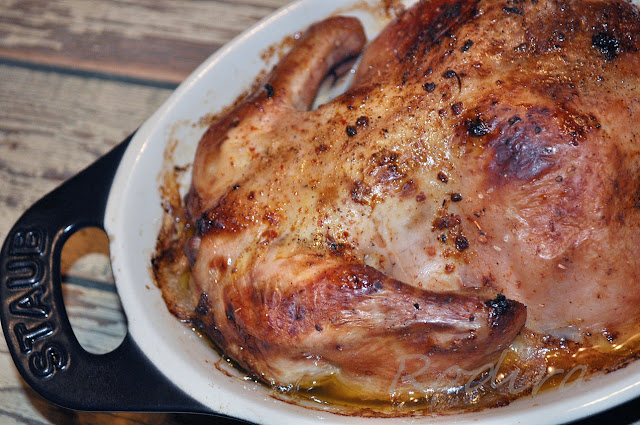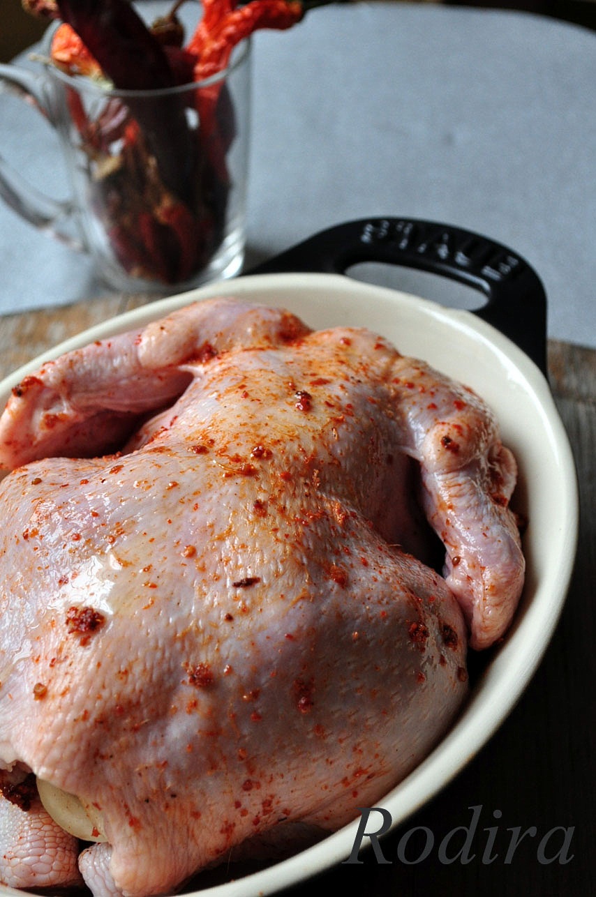 Если у Вас нет аджики - смажьте курицу горчицей.