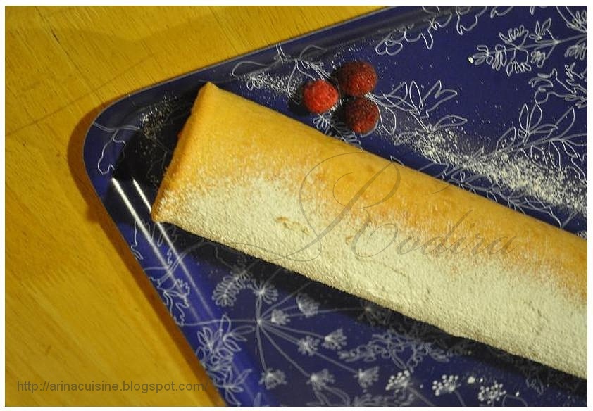 Кстати, Вы можете в этом рулете использовать любые сезонные ягоды - клубнику, смородину, ежевику, чернику - то, что у Вас есть в наличии.